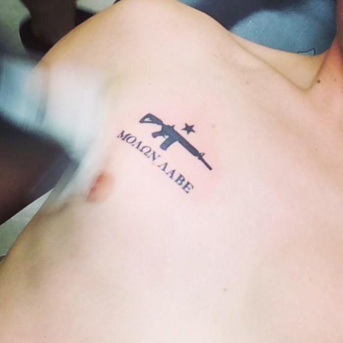 A patriotic themed tattoo on a very brave arm. Molon labe tattoo i got done in tarpon springs molon on the right regarding sizing 960 x 1280. The phrase translates from greek to come and Latin for (come and take them) meaning guns/weapons ect. I said to take a pic with … west tattooed the phrase molon labe onto his right forearm. Molon labe, patriotic masculine tumbler cup design, 20 oz., digital design, straight tumbler lemonbugdesignco. It's often overshadowed by the more popular spartan helmet, but it might have even played a more important role. Verdedigers van het tweede amendement zijn allemaal verenigd achter een tactische huidkunstcampagne! A flag was created in this image and named after him. The heart tattoo is rather a symbolic tattoo. The sentence molon labe (μολων λαβε in greek) means come and get them!, and according to the legend it was said by leonidas the king of sparta in response to the persian army demand that the spartans surrender their weapons at the battle of thermopylae (480 bc). This is because lion tattoo designs are associated with victory, courage, strength, and vitality, just as how many people see spartans too. Molon labe and snake tattoo.